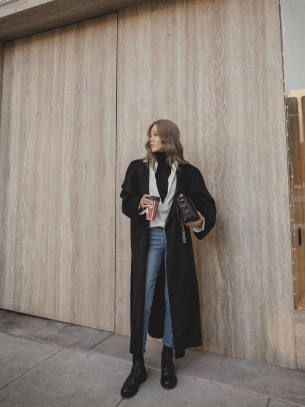想要多点复古感的宝宝,就穿一双方头黑靴,搭配大衣,又飒又气质!