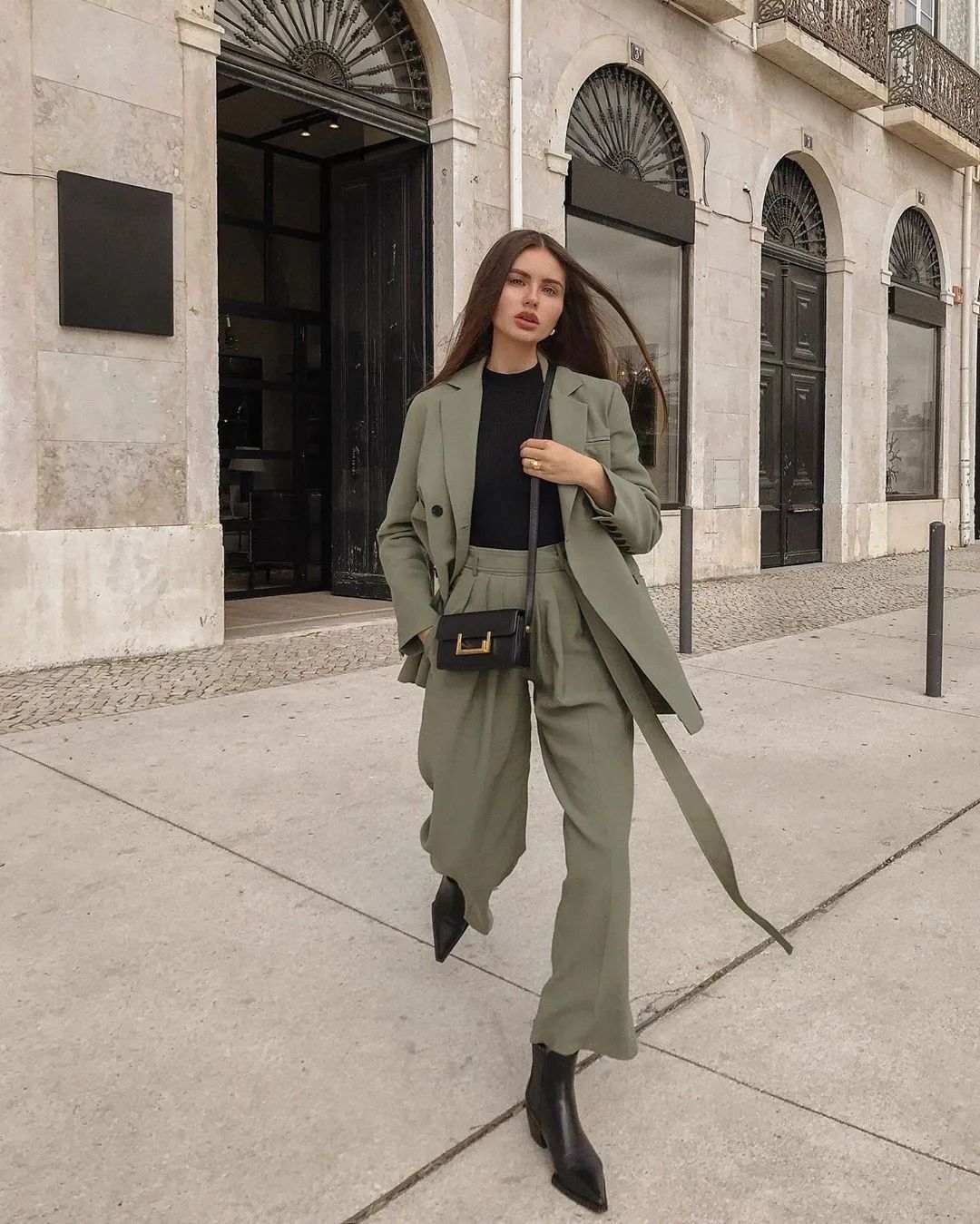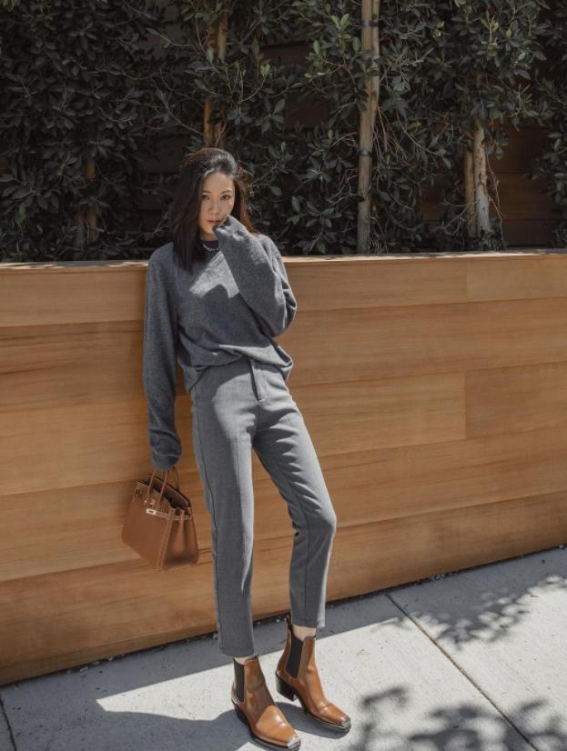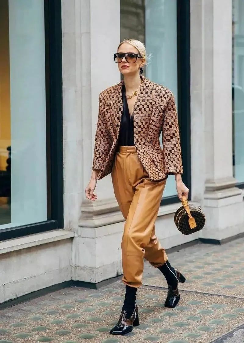 也可以直接选择套装穿搭,节省了很多搭配问题,而且西装套装的穿法,在今年春夏就已经很流行了,到了秋冬,搭配短靴会更添时髦。