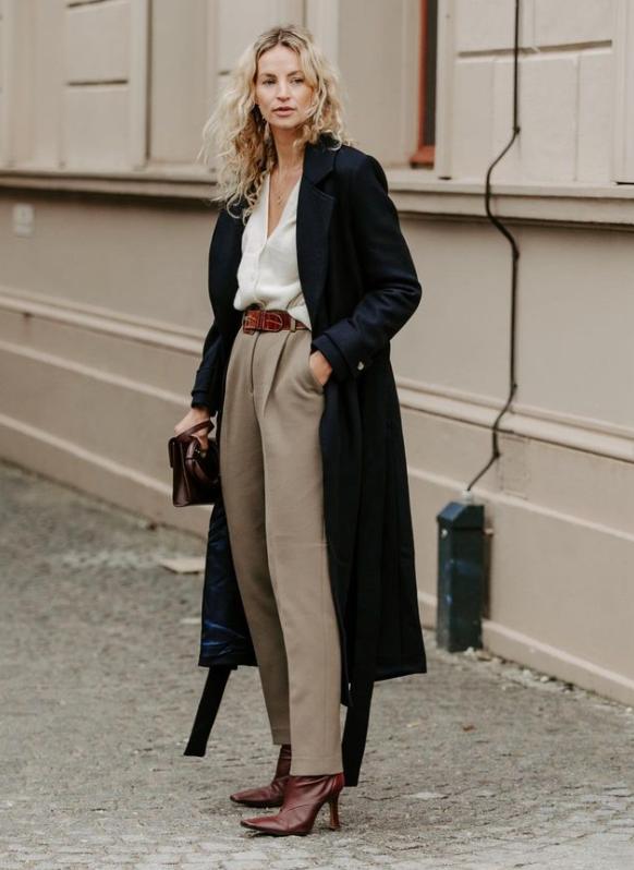 用秋冬必备的大衣与西装裤+高跟短靴组cp,气质时髦两手抓,即便都是些基础单品,也能做到轻松稳赢。