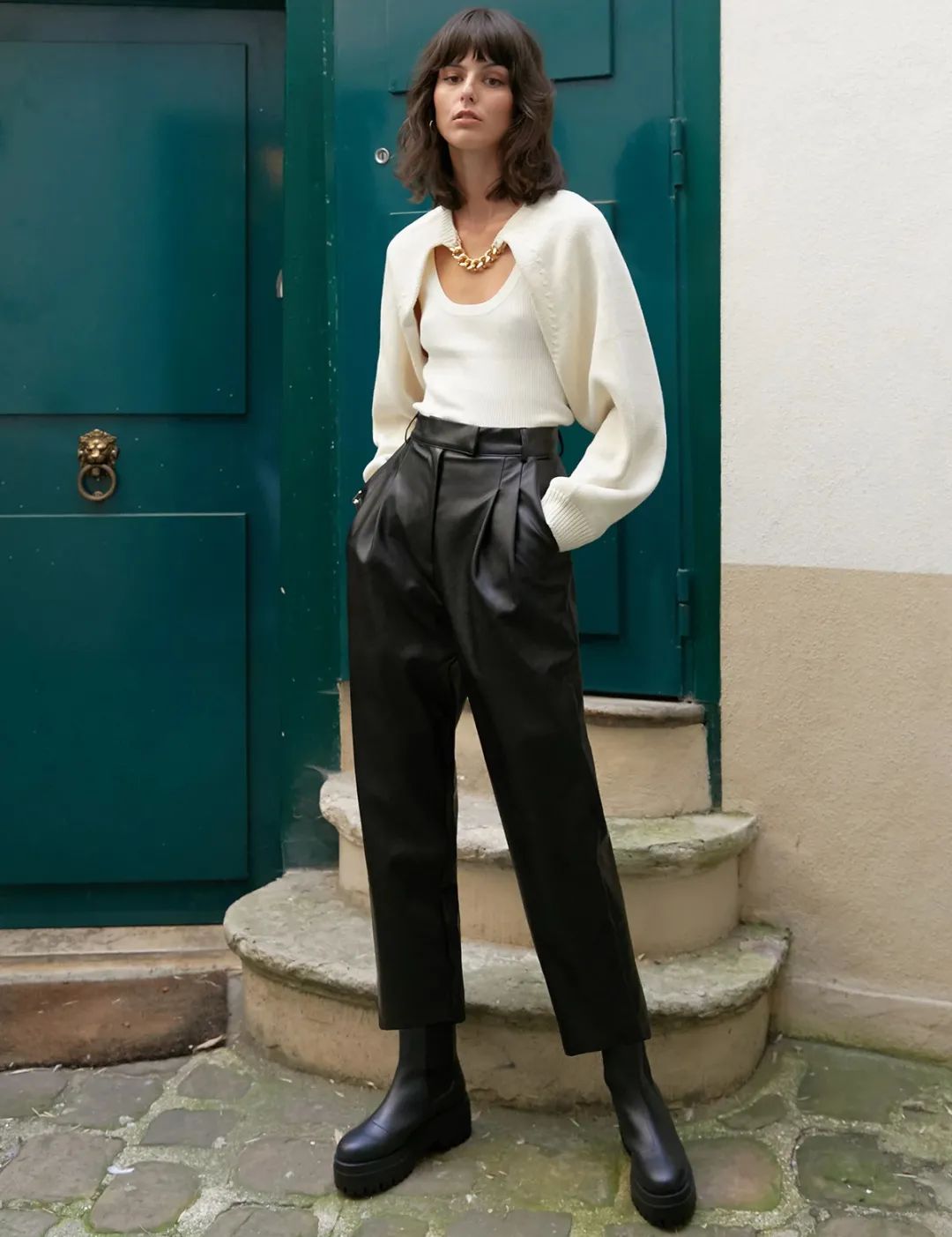 秋冬想要穿出炫酷感,一条九分皮裤就能解决,而它与短靴的搭配,更是很多时髦姑娘喜欢的一种风格,气场up!