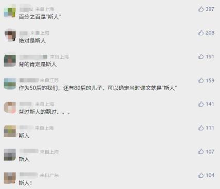 有网友表示,自己对这句话最深的印象来源并不是课本,而是古早的电视剧之中,当时演员的台词念的就是“斯人”。也有网友认为,群体性错误记忆的出现和心理暗示有关。因为人倾向于相信别人所说的是正确的。一旦有错误信息出现,很可能误导了既有记忆的真实性。
