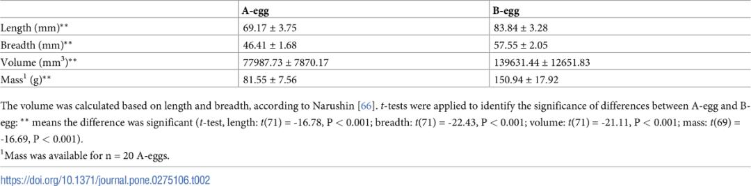 这两个蛋体积差异大得非常明显。根据统计,B蛋比A蛋重85%,体积大 79%。
