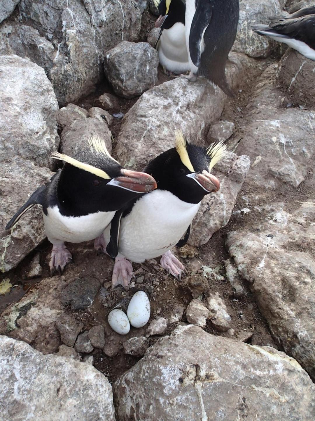 科学家推测,这是因为翘眉企鹅在跨海约 2500 千米的途中,海水冰冷,加上雌鸟的体力消耗,导致雌鸟的卵黄发生受到限制,所以当它们到岛上开始繁殖时,第一个生下的蛋总是小的。