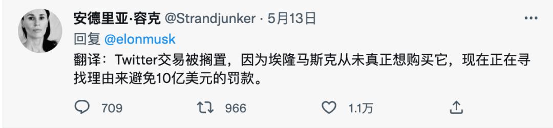 能看得出来,这个中年大男孩是在认真筹钱,为收购做准备。但,拐点来了。5 月中旬,马斯克突然暂停了收购。