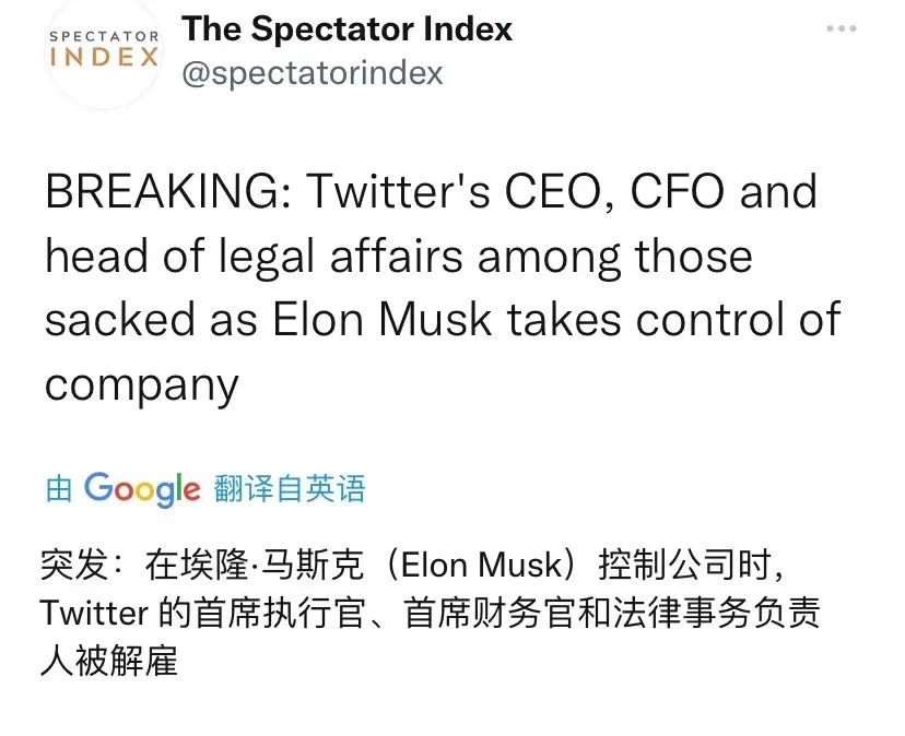 马斯克前脚收购,后脚就解雇了早就看不顺眼的推特 CEO 、 CFO ,接着又炒了当初封掉特朗普账号的法务负责人。