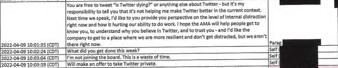 首先拒绝进董事会,导火线是他和 CEO Parag ( 下面叫他阿 P ) 闹翻了。