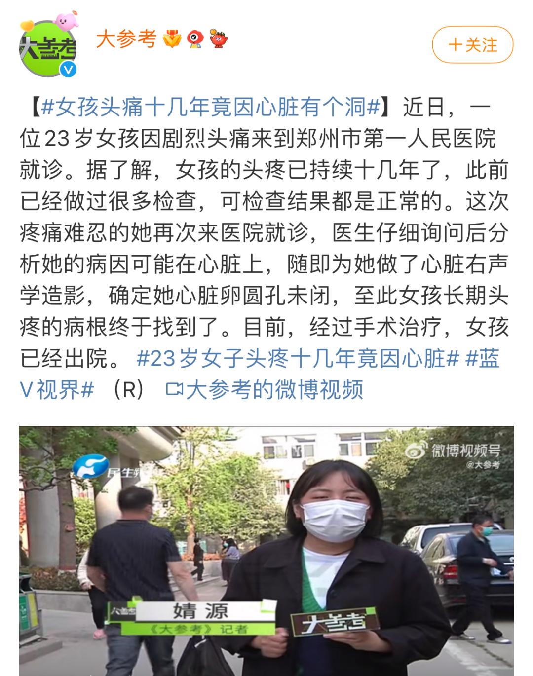 (来源:微博账号“大参考”)所以,头痛虽常见,但不是都可以忍过去,千万不能掉以轻心。