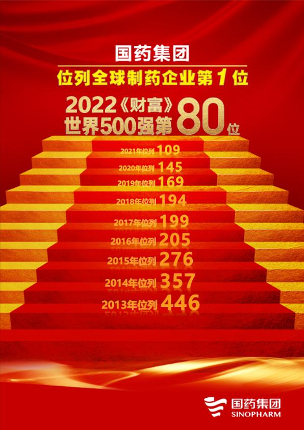 今年,在最新的世界500强排行榜中,国药集团位列第80位,居全球制药企业之首。而今年也是国药集团连续入围世界500强的第十个年头。