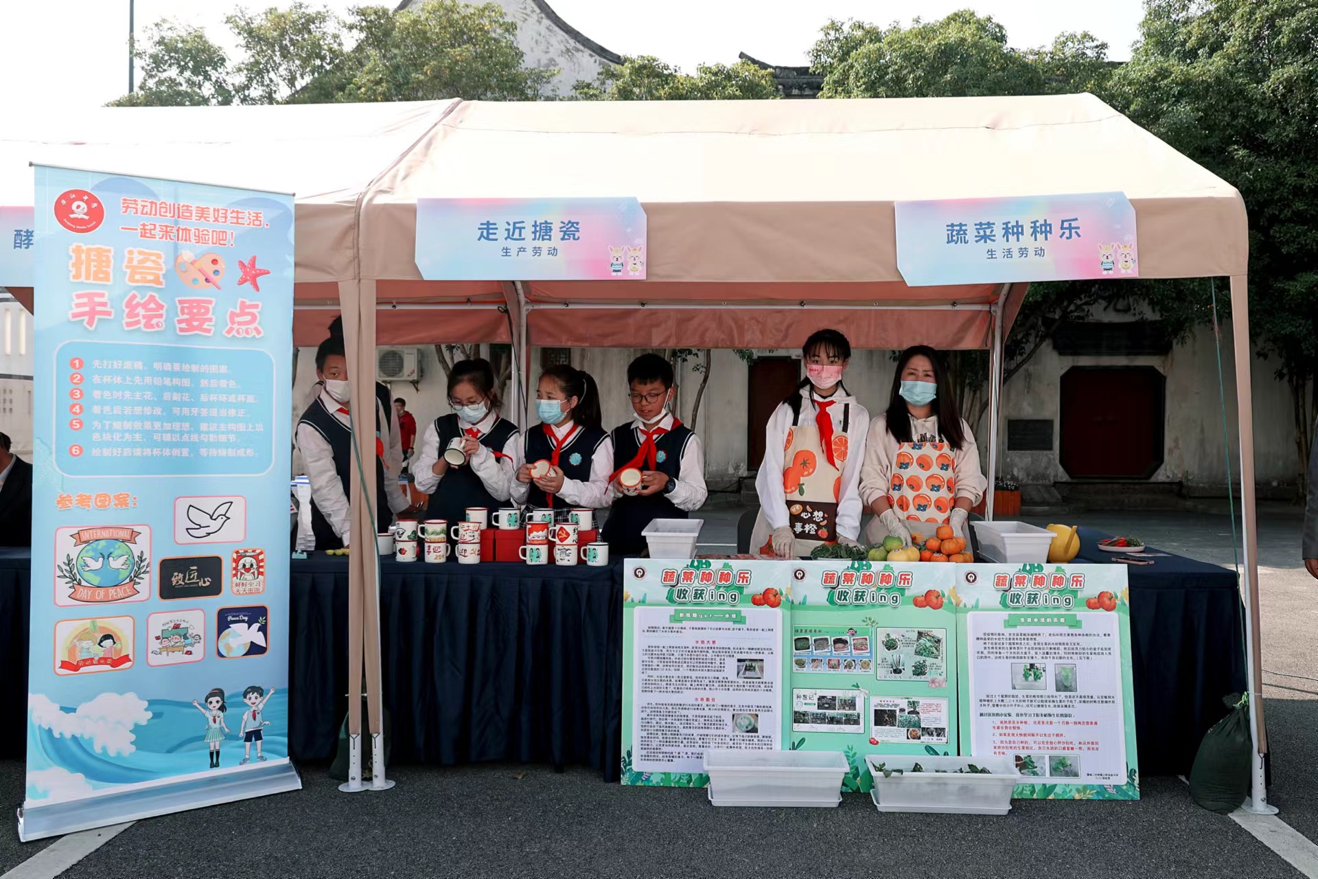 李乐玲(右二)的“蔬菜种种乐”项目在“劳动教育嘉年华”上受到关注。均为上海嘉定区教育局供图
