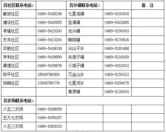 各属地疫情返乡报备电话