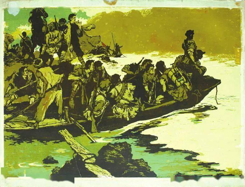 《巧渡金沙江》,套色木刻,袁吉中 作 1961年(图片来源:四川日报)