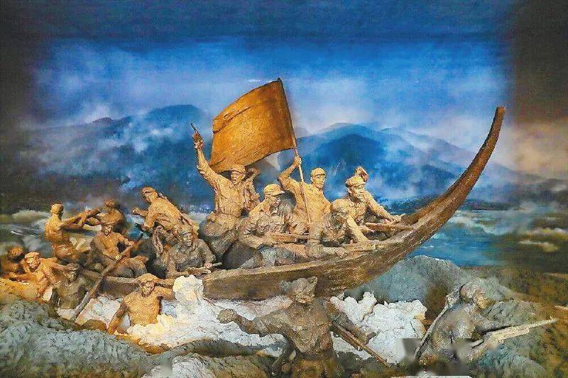 位于石棉县中国工农红军强渡大渡河纪念馆内的雕塑,形象地再现了红军强渡大渡河的激烈场景(黄刚 摄,图片来源:四川日报)