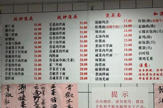 店里的价目表供应的都是