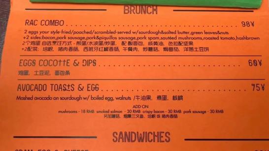 以“宇宙中心”安福路上RAC RAR的网红brunch为例,它家的brunch菜单很简单,分三档: