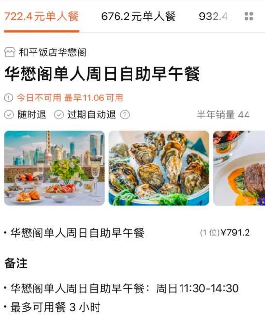比如和平饭店的华懋阁,周日brunch的价格是688元/位(另加15%服务费),自助餐加单点一道主菜,包含软饮、果汁、啤酒、葡萄酒。