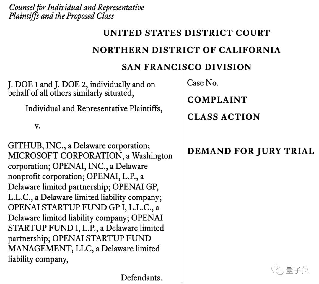 其实在10月份,马修就公开表示要告Copilot。现在他和几位优秀的律师一起前往加州旧金山的美国联邦法院,对Copilot提出集体诉讼。