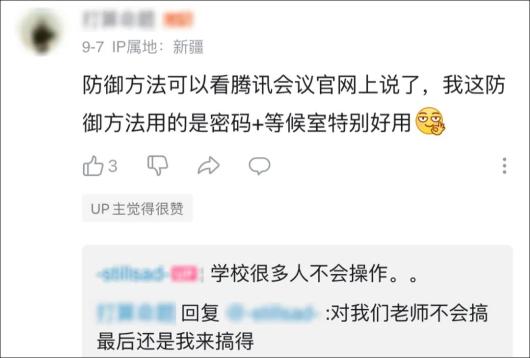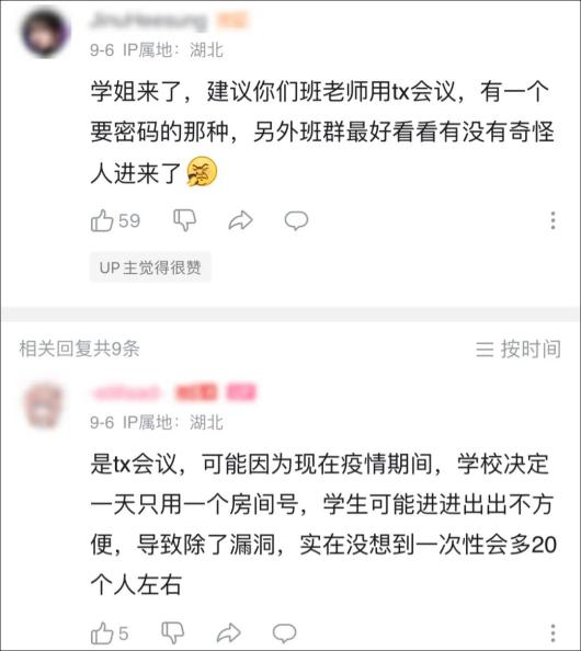 在相关视频的评论区,曾有高年级学生提醒遭“网课入侵”的网友,建议使用有密码的在线会议平台上网课,检查班群里“有没有奇怪人进来”,但遇到了新的“漏洞”。