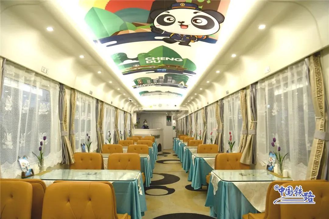 在饮食方面,除了调酒、茶艺等特色服务外,“熊猫餐厅”配有各式烹饪器材,由专业厨师团队掌勺,结合旅途沿线地区的饮食文化,精心设计了符合大众口味的特色餐单,担担面、钵钵鸡、龙抄手、钟水饺等特色小吃种类丰富,满足了旅客的多样化需求。