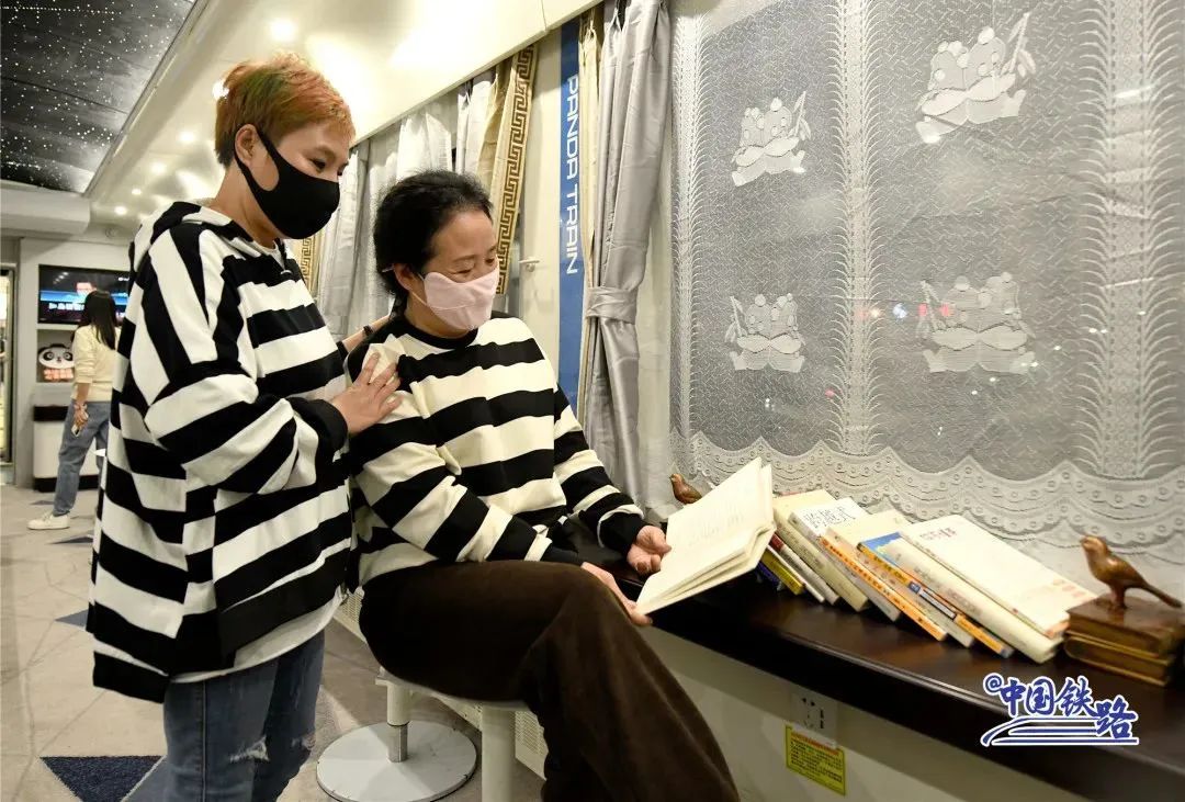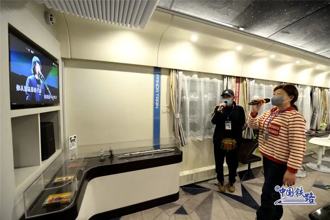 多功能娱乐车设有唱吧、阅读区、棋牌区和特色帮扶产品推介区等,旅客可以在此唱歌、读书、休闲娱乐,也可以购买文创产品和土特产品。