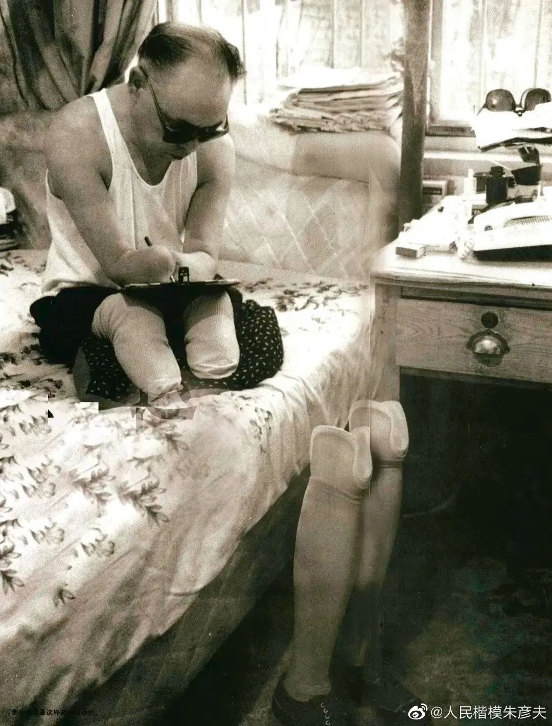 由于日复一日的过度用眼和缺乏睡眠,他的两只眼睛都出了很大的问题,那只受过伤的右眼更是直流血水,去医院包扎也不管用。朱彦夫没再管它,一旦写起来,他就分秒必争。