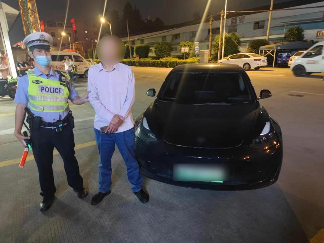 近日晚上,南海公安分局交警大队盐步中队在辖区盐秀路粤泰路口开展交通违法夜查行动,约22时许,执勤民警发现一辆新能源纯电动车驶入执勤路段时,车速突然减慢随后转弯行驶,意图逃避检查。见此可疑情况,民警随即上前示意该车停车接受检查。车辆停稳后,该车驾驶人解某从驾驶位下车,向民警交代自己当晚喝过酒的事实,但却辩称自己开启了车辆的自动驾驶功能,不算酒驾。
