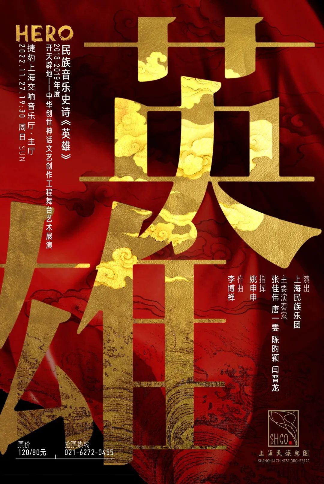 民乐交响史诗《英雄》由上海民族乐团委约青年作曲家李博禅完成整台创作,并由驻团指挥姚申申执棒、演奏家陈昀颖、唐一雯、闫晋龙、张佳伟等倾情演绎。