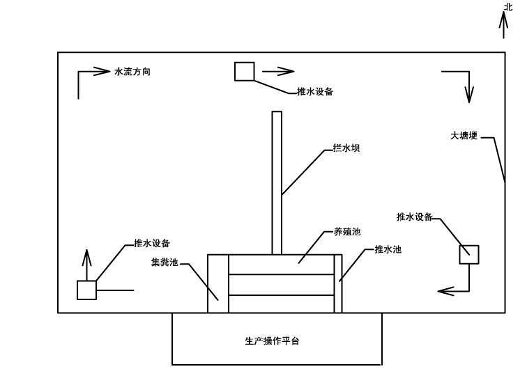 图三:低碳高效池塘循环水养鱼平面布局示意图