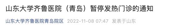 山东大学齐鲁医院(青岛)暂停发热门诊的通知