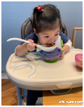 宝贝们的食物质地和种类是一年内逐渐接近到成人模式。请给予宝贝们自我进食的机会,在2岁时做到自我进食。