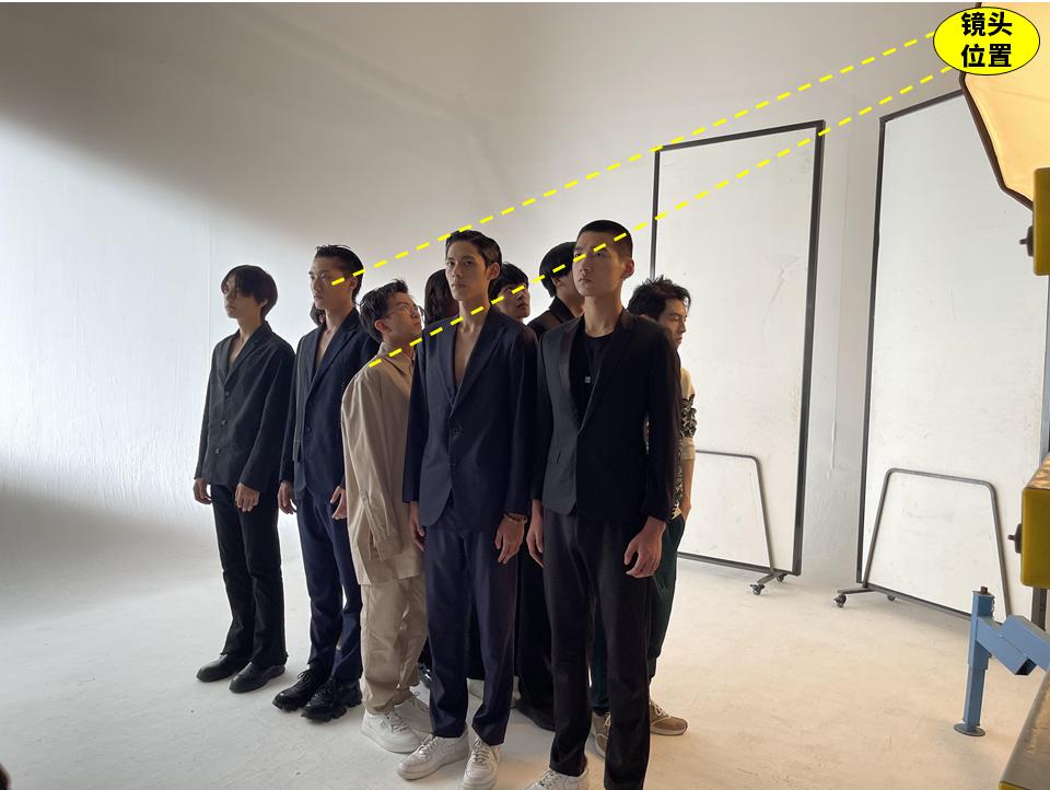 刚开始,我们仨站好了位置,摄影师叫模特们都走进来。结果站我旁边的模特实在太高,导致我的脸恰好位于了镜头和他脑袋的延长线上。这哥们硬生生在摄影师的视野中实现了一次毕全食。