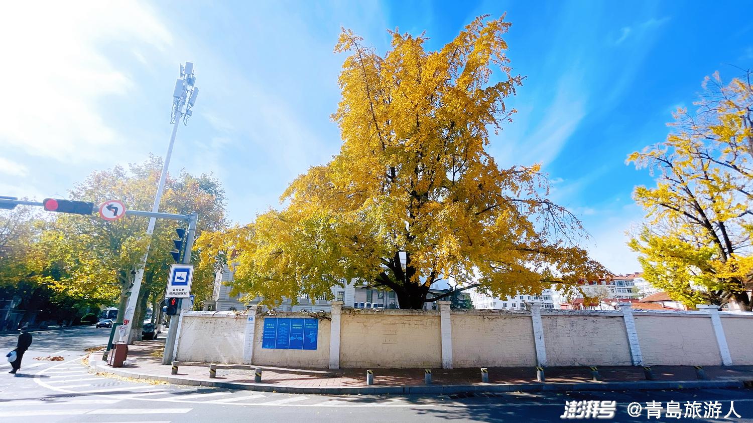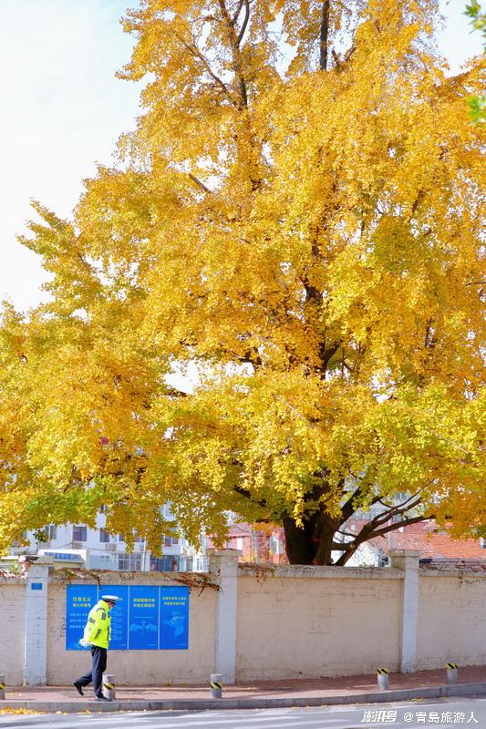 而青岛网红墙对面的这棵大银杏树,却正好看!