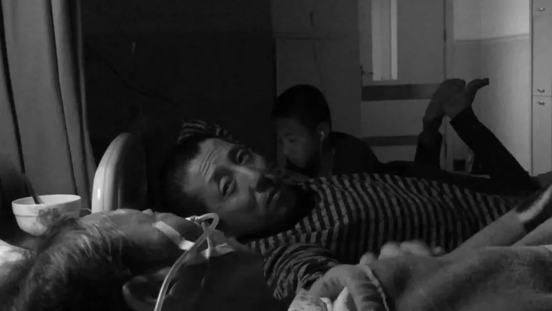 在打了几个不太成功的电话之后,大舅的妻子来了,这给这个平静压抑的影片带来了第一个冲突的时刻。两个人好像看不见我的镜头似的,在走廊里吵了起来。大舅他还有三个孩子,有两个是和前妻生的。那两个孩子都是女孩,都已经长大工作了。跟现任生下的是个男孩,就是影片后面跟大舅一起在医院陪伴的那个小男孩。