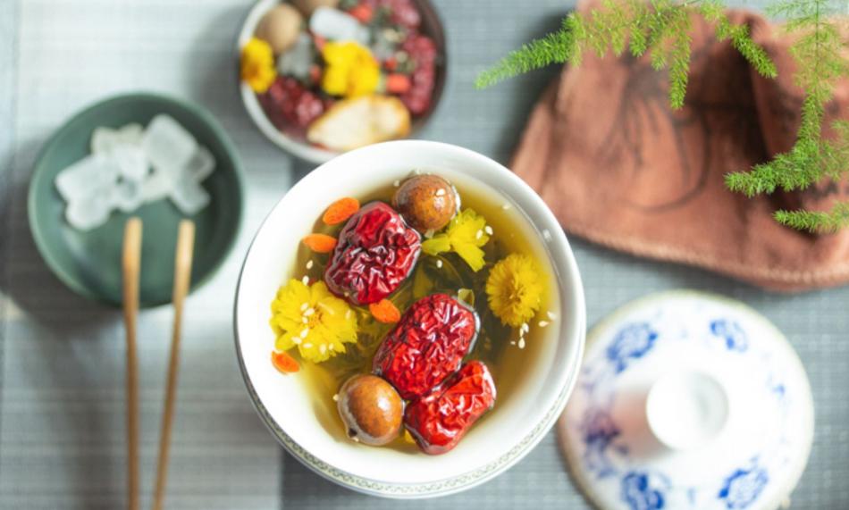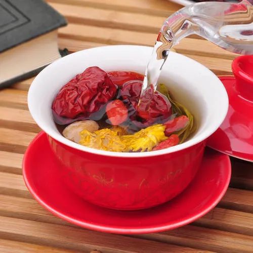 三泡台,说它是茶,更像每一个兰州人的饮料。三泡台,是用上等的菊花、福建桂圆、新疆葡萄干、甘肃临泽小枣、荔枝干、优质冰糖为佐料配制而成,香而不清则为一般,香而不甜为苦茶,甜而不活不算上等,只有鲜、爽、活才为茗中佳品,呷上一口,茶的清、干果的香、冰糖的甜掺在一起浸入味蕾。兰州人习惯说“刮个碗子”,那是因为喝这碗茶姿势很讲究,在饮用时,必须是一手捧在盖碗底,另一只手揭起碗盖,把茶碗中的飘料轻轻划向下嘴处的反方向,滗出的茶汤就可以无障碍的入口了。