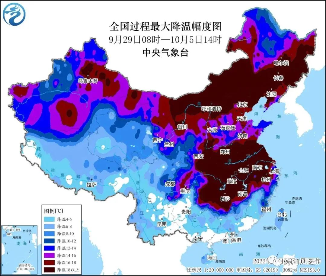 9 月 30 日-10 月 5 日全国最大降温幅度