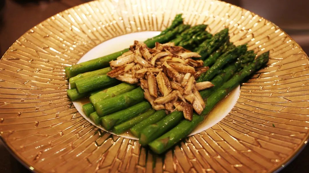 取用鲜嫩的芦笋为原料,佐以现拆的完整大闸蟹腿肉,两者经旺火速炒,最大限度保留其自身的美味与营养,让芦笋的爽脆和蟹腿的柔嫩相得益彰,体现了中华饮食文化以“和”为贵的精髓。