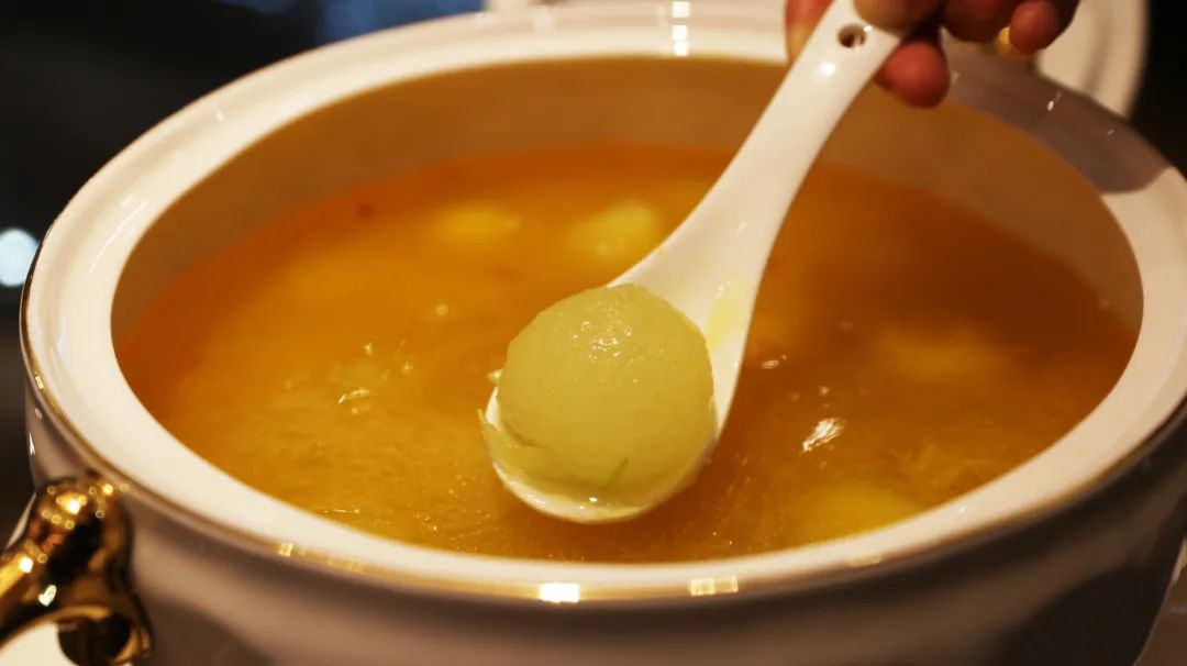 这一碗暖汤端上桌,远远就闻到一股冬瓜的清爽味道和专属于河海的鲜味。干贝颗颗饱满,蟹肉晶莹剔透,冬瓜也宛如一颗绿色珍珠镶嵌其中,样子非常好看。夹起筷子尝一口,口感软糯清爽,细嫩鲜美,堪称绝配!
