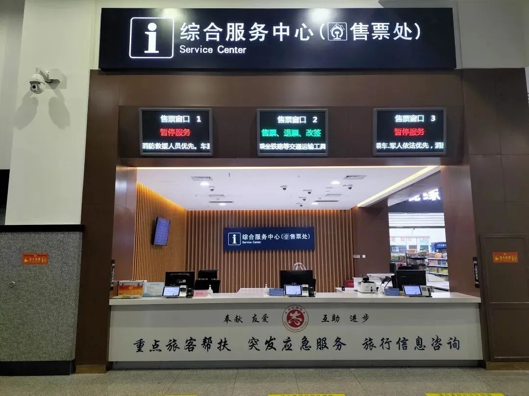 服务台为旅客提供车票售改签、咨询、遗失物品查找、老幼病残孕等重点旅客一站式接力服务,还备有应急小药箱和爱心包,可以为旅客提供创可贴、口罩、酒精、棉签、针线包等应急物品,形成来电受理、现场帮扶、满意度回访的“闭环式”服务。
