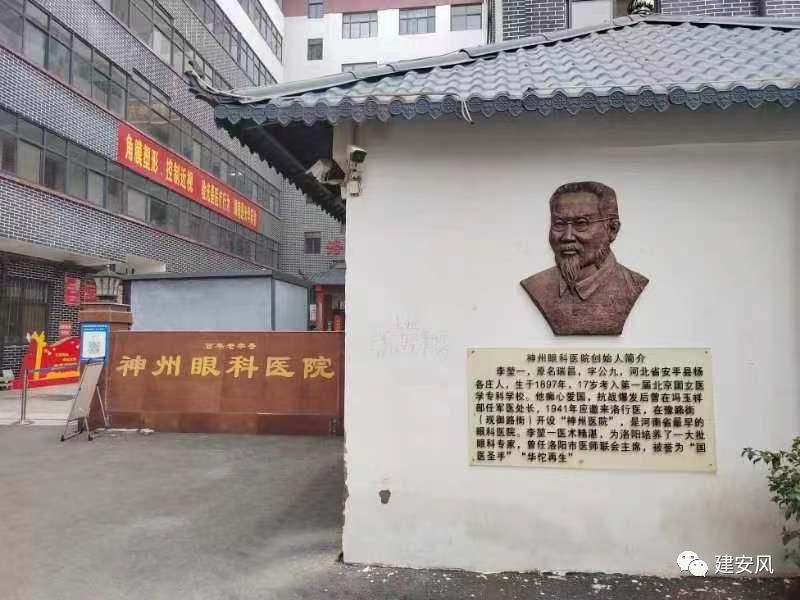 “L”型的文化街拐弯处为洛阳神州眼科医院。据悉,这所专科医院的创始人为李堃一(字公九),河北省安平县人,生于1897年。李堃一17岁考入第一届北京国立医学专科学校,抗战爆发后曾在冯玉祥部任军医处长,1941年应邀来洛行医,在豫路街(现御路街) 开设“神州医院”, 神州医院是河南省最早的眼科医院。医术精湛的李医生为洛阳培养了一大批眼科专家, 他曾任洛阳市医师联会主席,被誉为“国医圣手” “华佗再生”。
