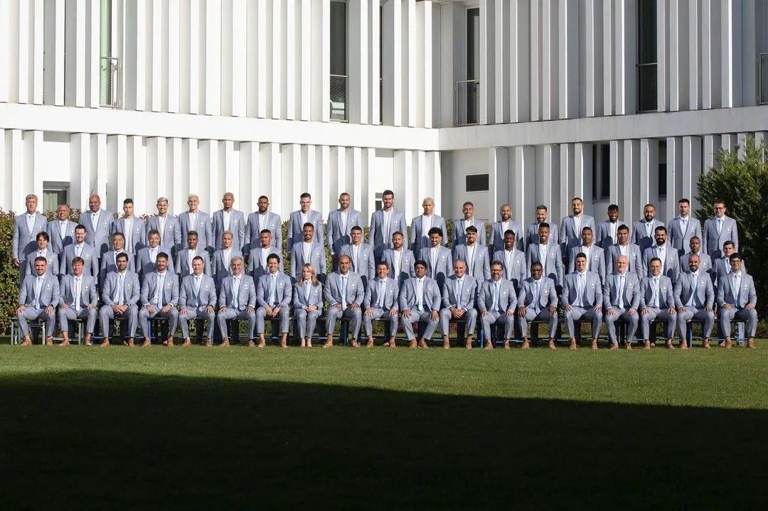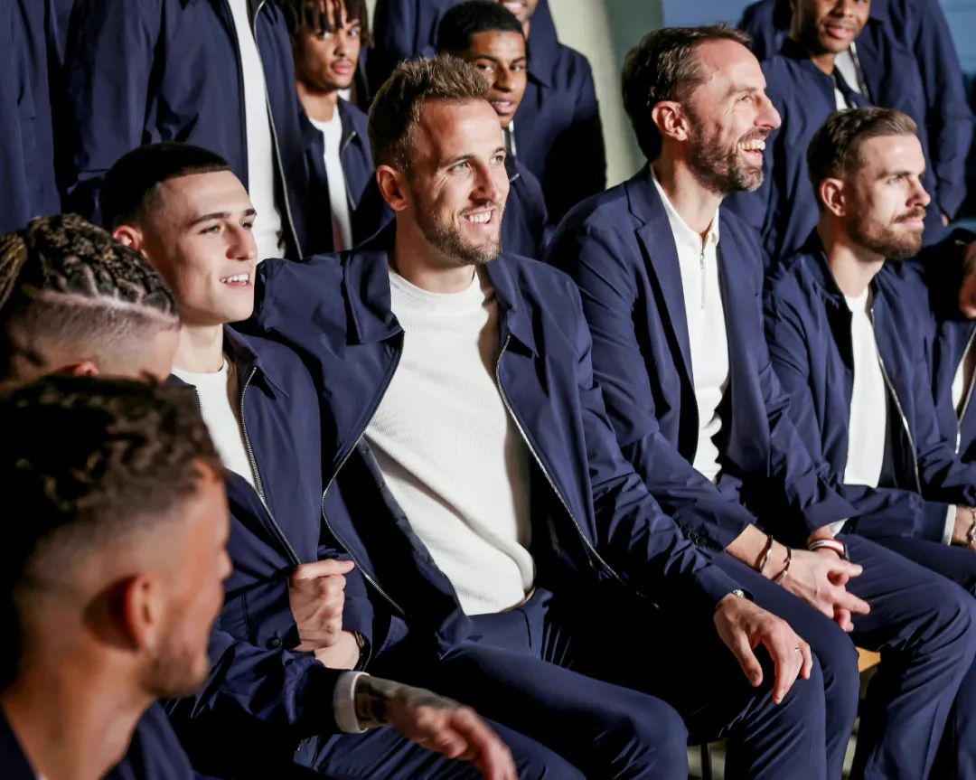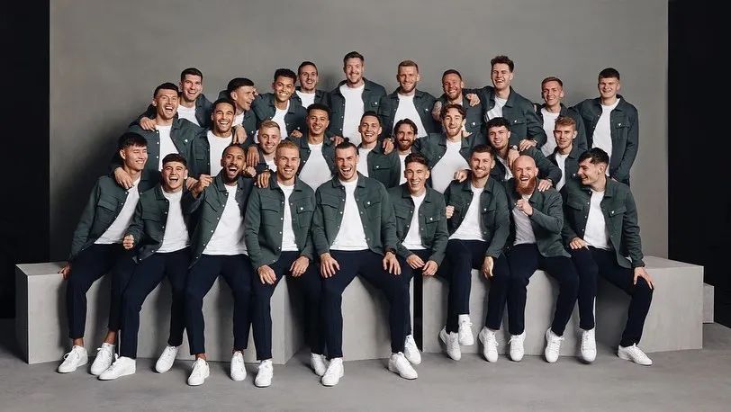 其实一直赞助他们的Marks & Spencer玛莎百货,今年依旧为英格兰队提供了正式服装,也拍过一张集体照。但不知道为什么,球员们没穿来这个场合。