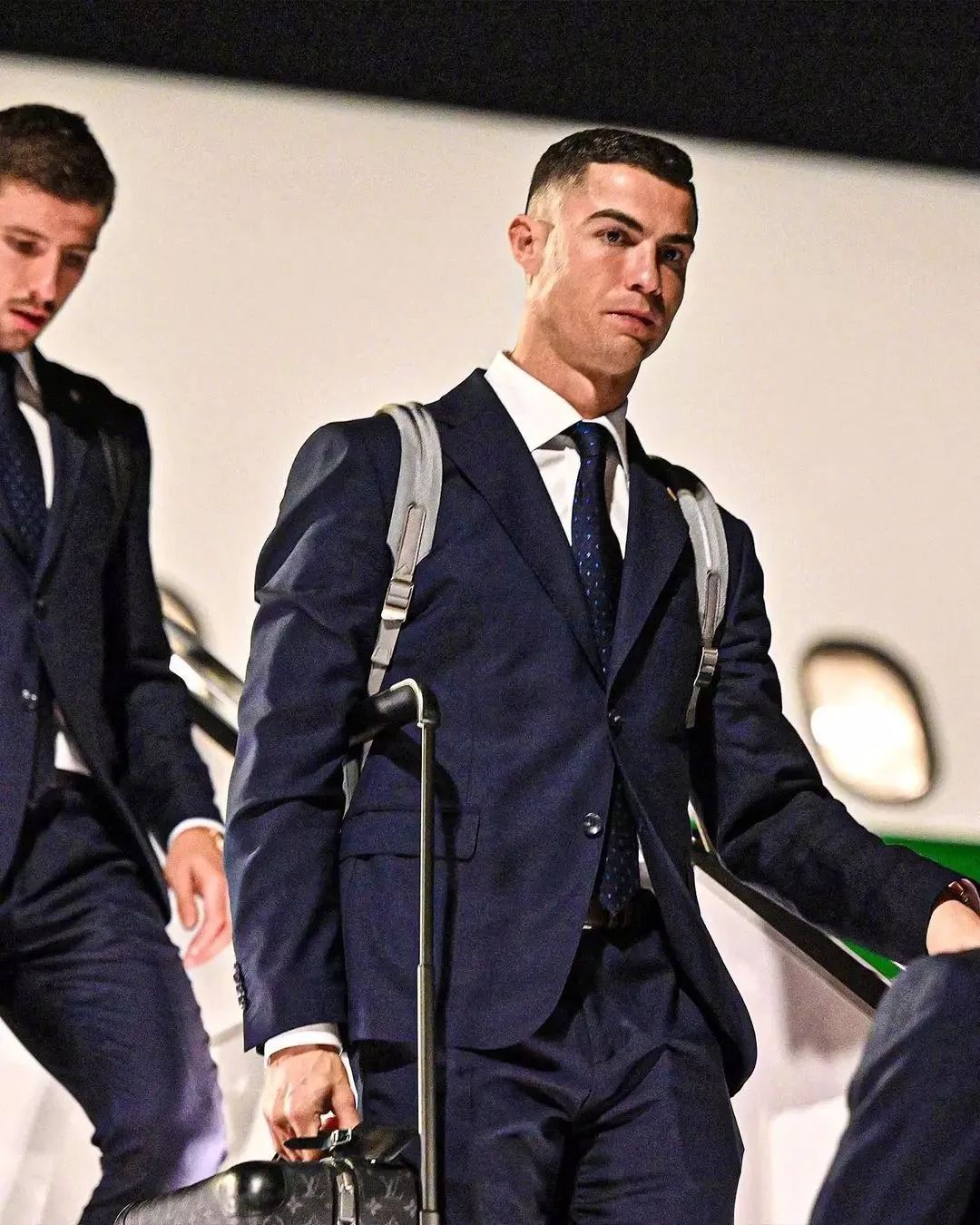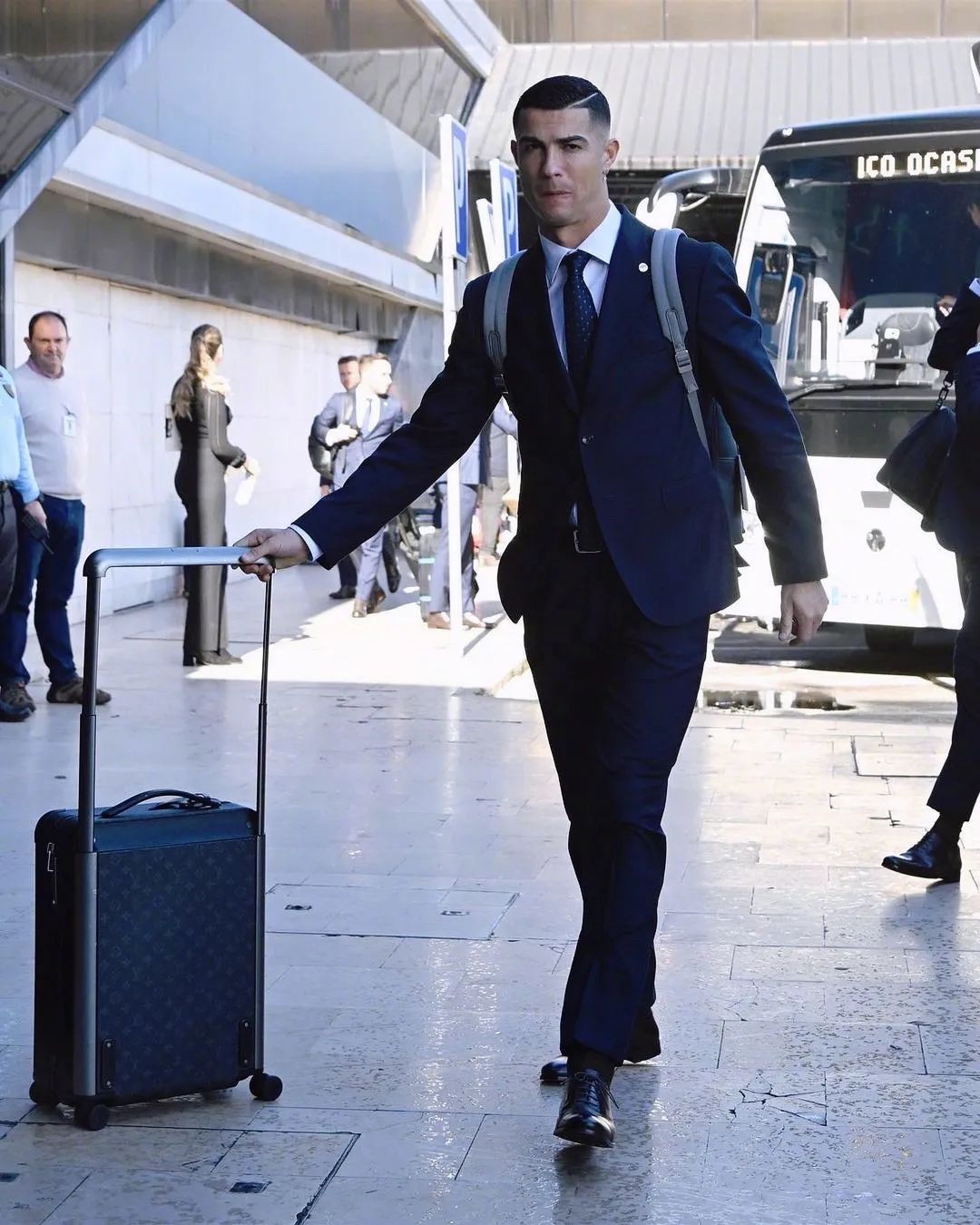 拉着LV登机箱的C罗相当瞩目,把粉丝激动坏了。