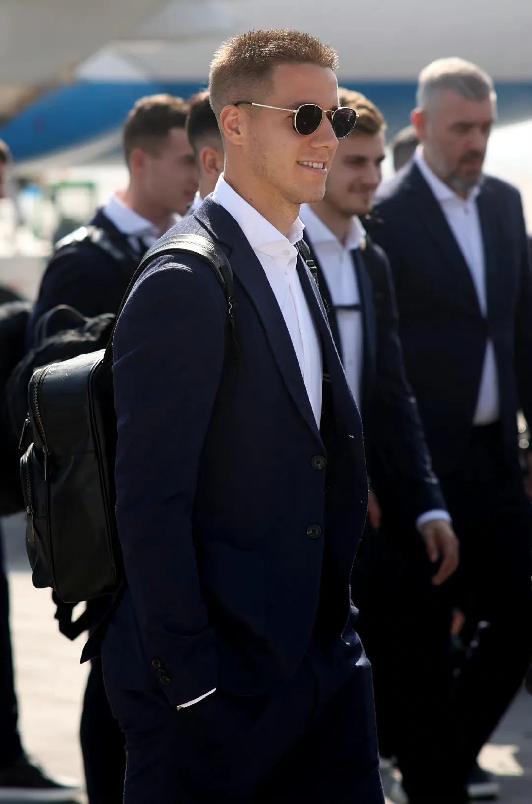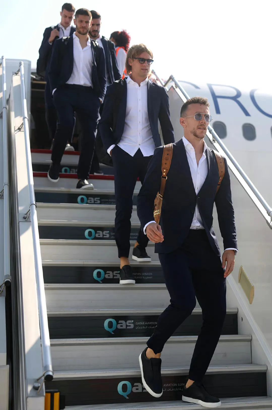 最出人意料的当属英格兰队,作为领带要打得一丝不苟的西装大国,今年居然穿了一套运动服抵达机场。