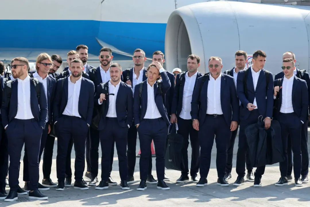 克罗地亚队,蓝西装白衬衫,没有系领带,显得更松弛。