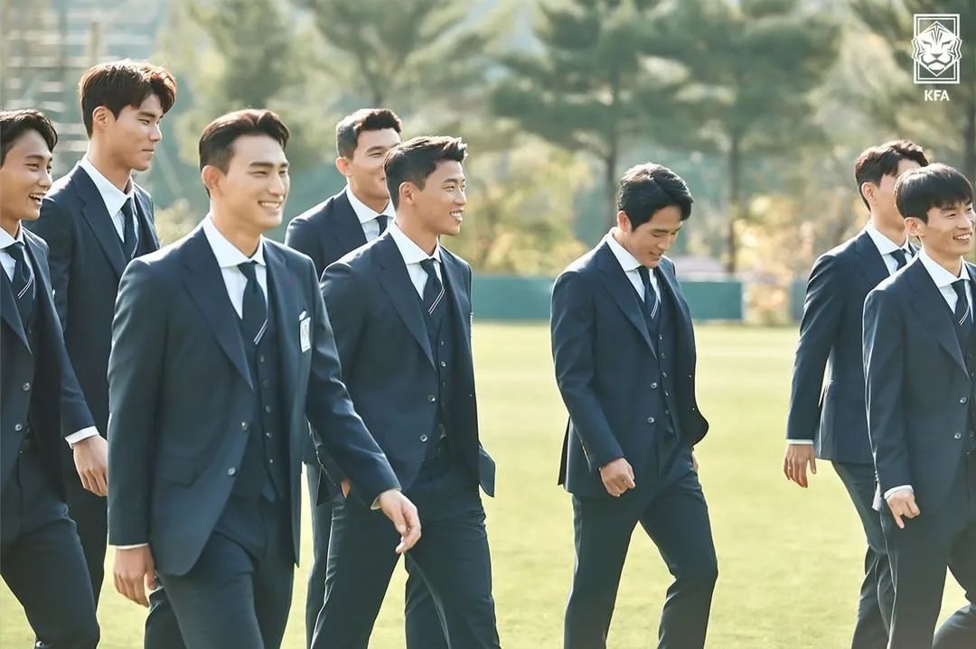 韩国队可能是本届最会拍照的,柔光一打,仿佛在拍偶像剧。西装来自本土品牌Cambridge Members。