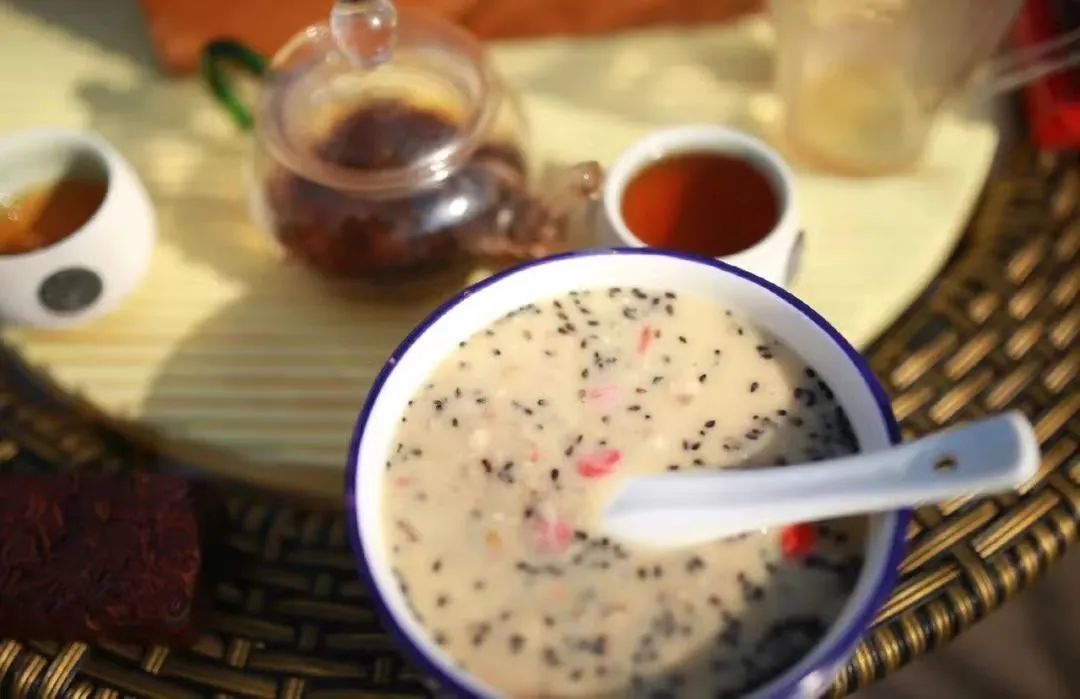 一把小米磨粉,铺洒锅中小火慢炒,直到粉面从淡黄色变为浅褐色,醇香之味四处飘散,便可盛放到碗底。再用大号茶壶中滚开的沸水一冲,拿勺一搅,一碗醇厚香浓、暖人心脾的茶汤就成了。