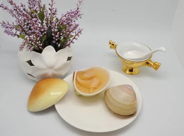 其实还有一传说:春秋时,越国用西施使美人计,灭了吴国。事成后,越王勾践想接西施回国,但王后怕西施威胁到自己的地位,便将其沉江。相传,西施死后化为这沙蛤,期待有人能找到她,她便吐出丁香小舌,尽诉冤情。