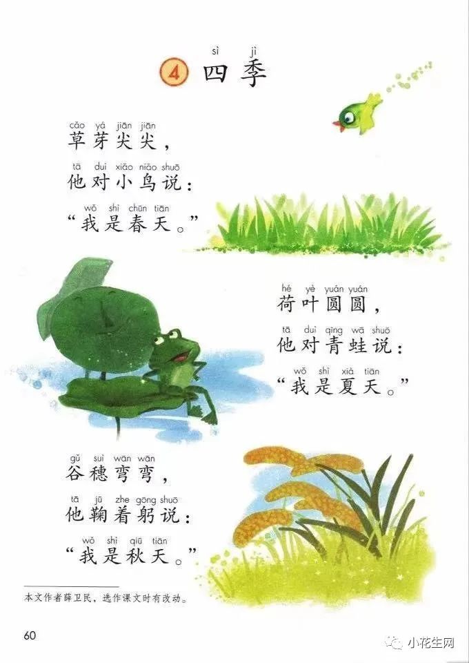 碰到诗歌或文字优美的课文,我会用提问的方式,启发她按照课文的描写方式进行仿写。比如一年级上册的《四季》是一首很活泼的儿童诗。