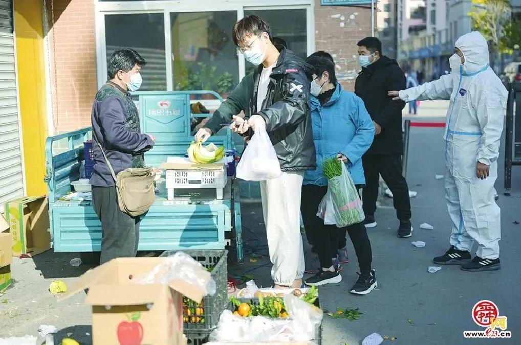 上午小区临时管控,感到有些恐慌,也闹了些情绪。中午到小区溜达时发现,物业为每户业主都准备了一大兜爱心菜,有两颗大白菜、四个西红柿、五颗胡萝卜、一棵大葱、两颗蒜、三个大土豆,还有二十多颗鸡蛋……正常的小家庭吃好几天足够了。同时,位于南门内的小菜店也运来了新鲜蔬菜、肉蛋等,可自由购买,有不少人正在挑菜。有吃有喝,大家的情绪便缓解下来。封控也好,就当休假啦。