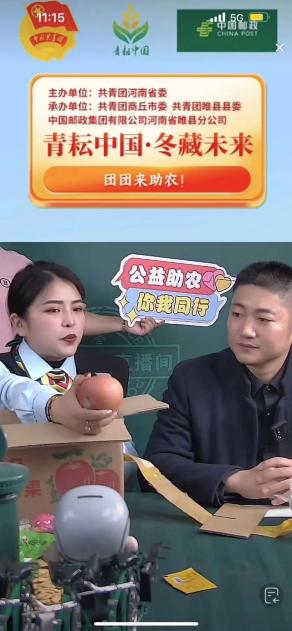 11月25日,商丘睢县团委在团省委以及团商丘市委的指导下,联合睢县邮政,开展“青耘中国·冬藏未来”公益助农直播活动。睢县邮政的青年主播以及睢县团委副书记孔维鹏对睢县特色产品进行全方位讲解,并展示睢县白菜、菠菜、辣椒等农产品的种植情况,与粉丝们进行积极互动。在近2个小时的助农直播活动中,吸引了共千余人观看,赢得了众多网友点赞刷屏。