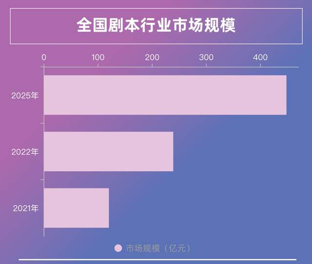 随着沉浸式体验经济的快速发展,人们对集推理、社交、扮演、游戏于一身的文旅消费新业态剧本杀的接受度逐渐增高,剧本杀也逐渐成为当下年轻人外出休闲旅游时娱乐消遣的重要选择。有关数据显示,2019年全国剧本杀门店数量由2400家飙升至1.2万家,到2020年底增长至超3万家,2021年已超过4.5万家。2021年中国实体剧本杀市场规模已经超过了120亿元,2022年预计将达到238.9亿元,预计到2025年中国剧本杀行业市场规模将增至448.1亿元。