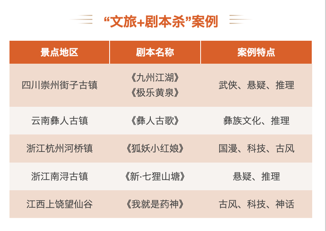 文旅+剧本杀模式大多是在具有文化底蕴和具有IP元素的景区中开展剧本杀游戏,这种形式的剧本杀相较于室内的剧本杀游戏有着更大、更高的产业规模,可以因地制宜,设计更丰富的环节,具有更逼真的场景和更沉浸的游戏体验。当然,文旅+剧本杀并不是剧本和旅游消费场景的简单叠加,而是对当前旅游、美食、文化的新突破,它将现实场景与虚拟场景相结合,给人带来更为丰富的身体感受和情感体验。景区、乐园、革命老区、古村落、博物馆、酒店、民宿、营地都在挖掘自己内容,结合自身场景的特点,做差异化内容和服务。